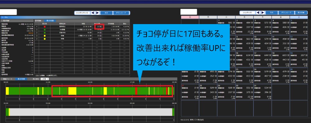 稼働状況が一目瞭然になり、改善のポイントの見える化が出来る様になりました。