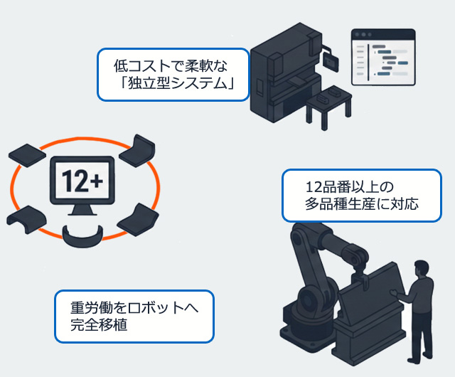 単なる機械化に留まらず、コスト抑制・多品種生産・そして将来的な24時間フルオートメーション化を見据えた戦略的な取り組みです。