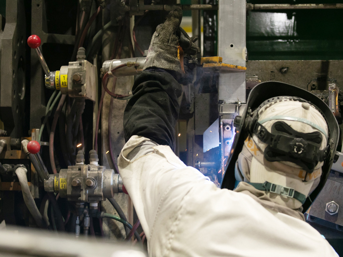 建設機械運転席の溶接組立て