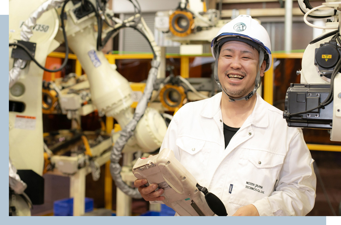 新卒で入社し、当初は製造部・部品課でスポット溶接に携わり現場感覚を磨きました。