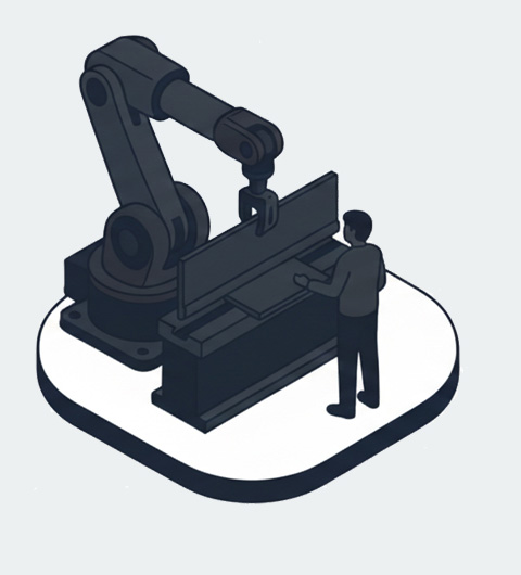 日々の作業におけるきめ細やかな作業管理の知識に加え、世の中の技術発展性、社内のロボット導入実績から2025年8月にプレスブレーキロボットを立ち上げました。