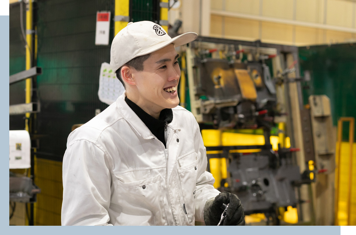 製造業の経験がない方でも大丈夫な職場です。将来は先輩のように、後輩を指導できる存在を目指して頑張っています。